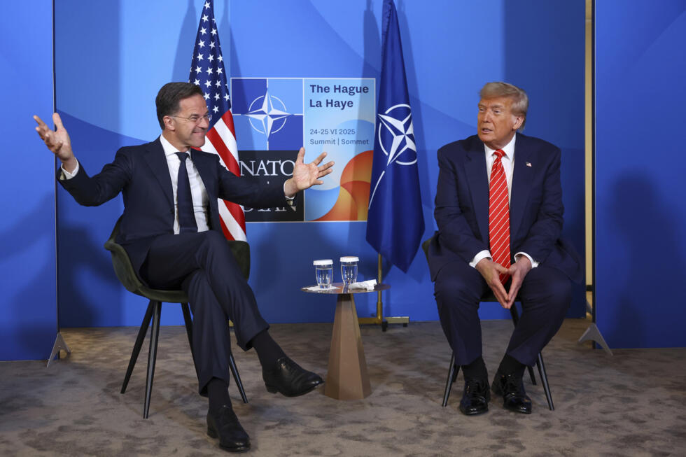 US President Donald Trump and NATO Secretary General Mark Rutte at a meeting in The Hague on June 25, 2025. © Piroschka Van De Wouw, AP