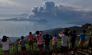 There were no immediate reports of casualties or major damage from the eruption south of the capital, which began on Sunday. But clouds of ash blew more than 100km (62 miles) north to Manila, forcing the shutdown of the country’s main airport, with more than 240 international and domestic flights cancelled. The airport partially reopened later on Monday.