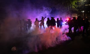 Federal agents fire teargas at protesters near the federal courthouse in Portland, Oregon, on 23 July. Photograph: Mike Logdson/RMV/Rex/Shutterstock