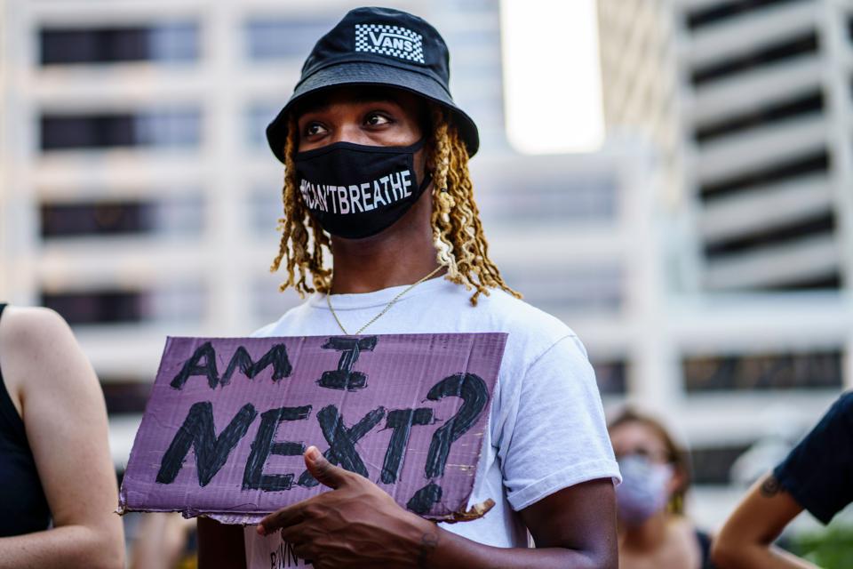 A Protester hold a sign reading "Am I Next?" outside Hennepin County Government Plaza during a ... [+] AFP VIA GETTY IMAGES