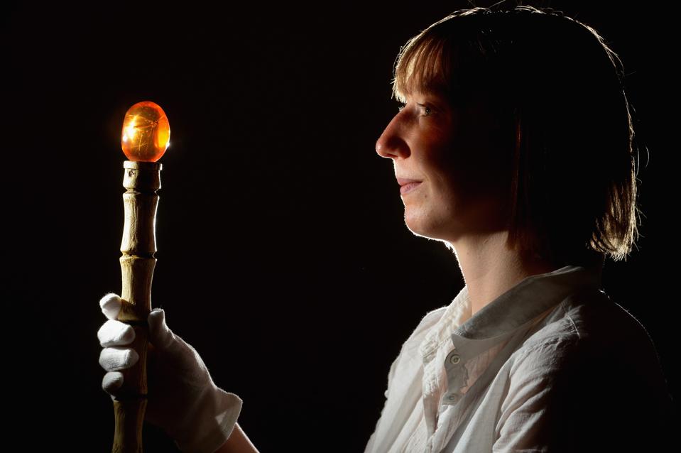 Movie prop used by Sir Richard Attenborough in the film Jurassic Park on view at the Amazing Amber exhibition in Edinburgh, Scotland, in 2013. GETTY IMAGES