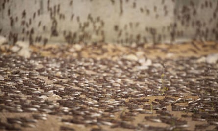 Locusts swarm in the Israeli village of Kmehin. Photograph: Menahem Kahana/AFP/Getty Images