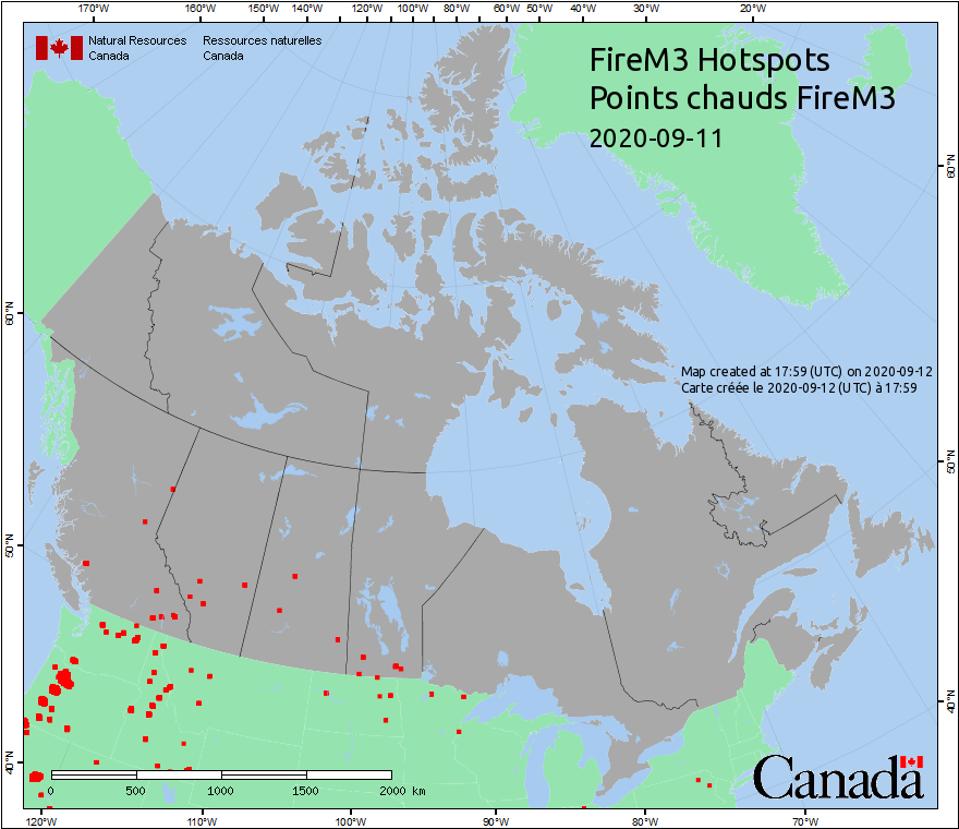 Fire hotspots in Canada on September 11th, 2020