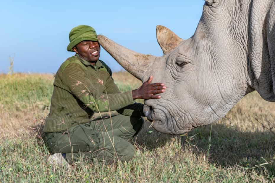 Rhino caregiver James Mwenda spends his days taking care of the northern white rhinos along with 10 other dedicated rangers. Photograph: Gurcharan Roopra