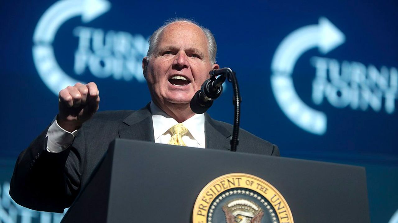 Rush Limbaugh speaking with attendees at the 2019 Student Action Summit hosted by Turning Point USA at the Palm Beach County Convention Center in West Palm Beach, Florida. (Wikimedia Commons)