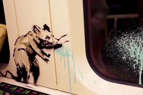 Last April, he created a new artwork in his bathroom that showed his trademark stencilled rats running amok around the sink and toilet.