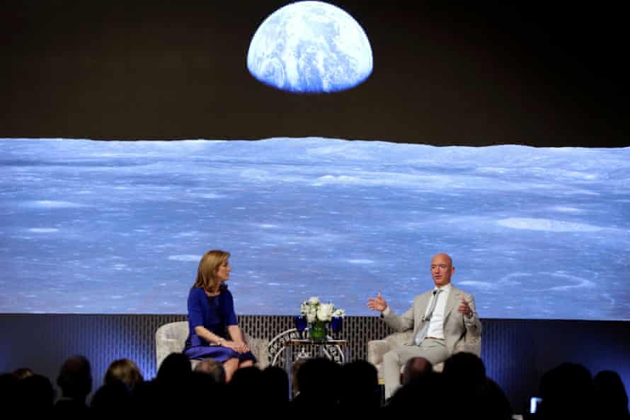 Caroline Kennedy and Jeff Bezos have a fireside chat during the JFK Space Summit in Boston in 2019. Photograph: Katherine Taylor/Reuters