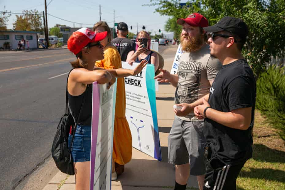 Members of the pro-choice group We Engage argue with members of Operation Save America outside Camelback Family Planning. Photograph: Caitlin O'Hara/The Guardian