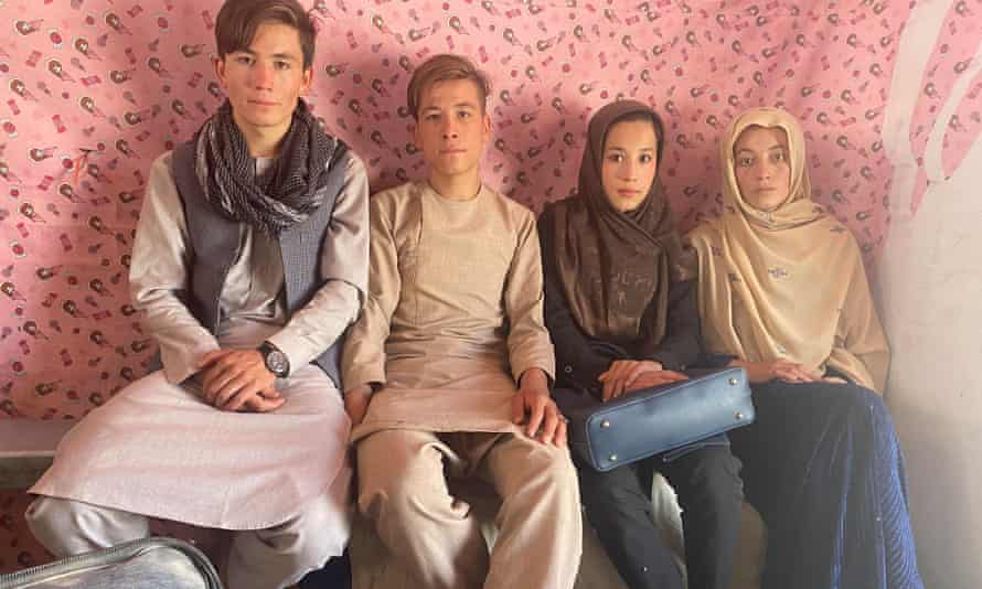left to right Mohammad Sharif Tahmasi, Ashmatullah Tahmasi, Nahid Tahmasi and Umaira Tahmasi who fled Kabul. Photograph: Shah Meer Baloch