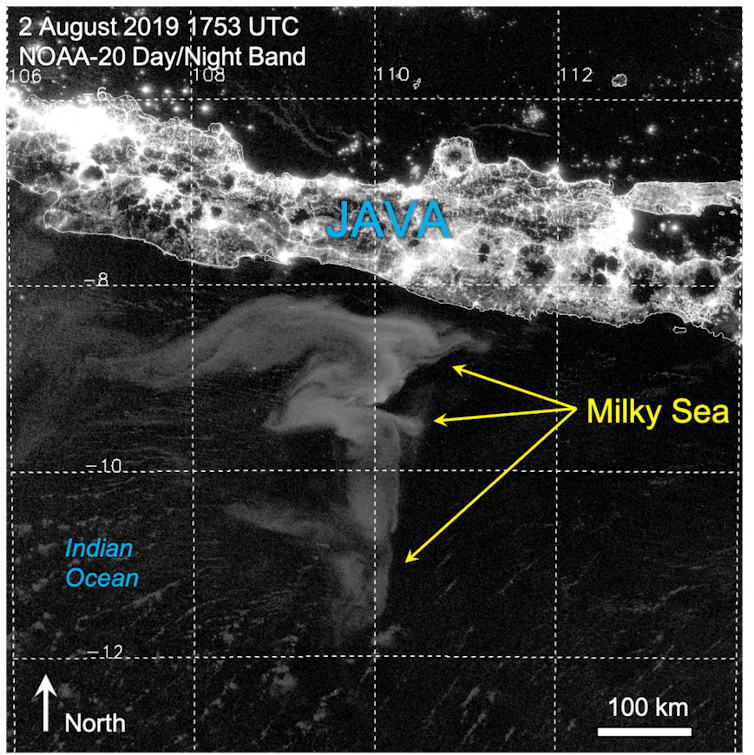 This milky sea off the coast of Java was the size of Kentucky and lasted for more than a month. Steven D. Miller/NOAA