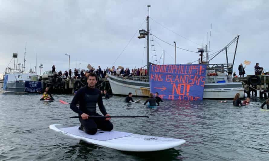 Among the protesters was Tony “Bear” Alexander, 59, one of 14 commercial fishers based on the island. He said he had joined the rally to fight “for future generations”, and that locals were concerned they would end up with visible oil rigs offshore.