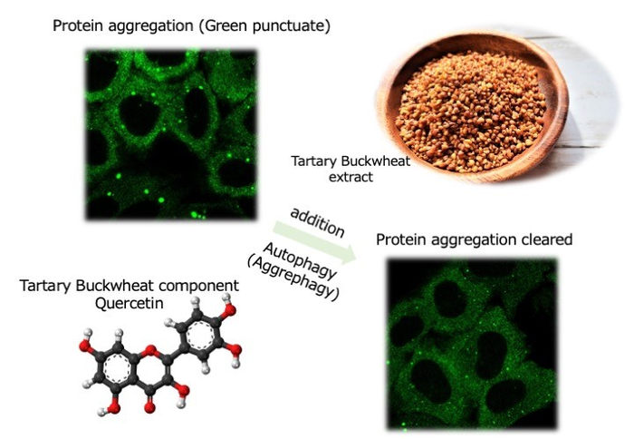 Researchers from Osaka University find that quercetin, a component of tartary buckwheat extract, promotes the degradation of harmful protein aggregates in cells