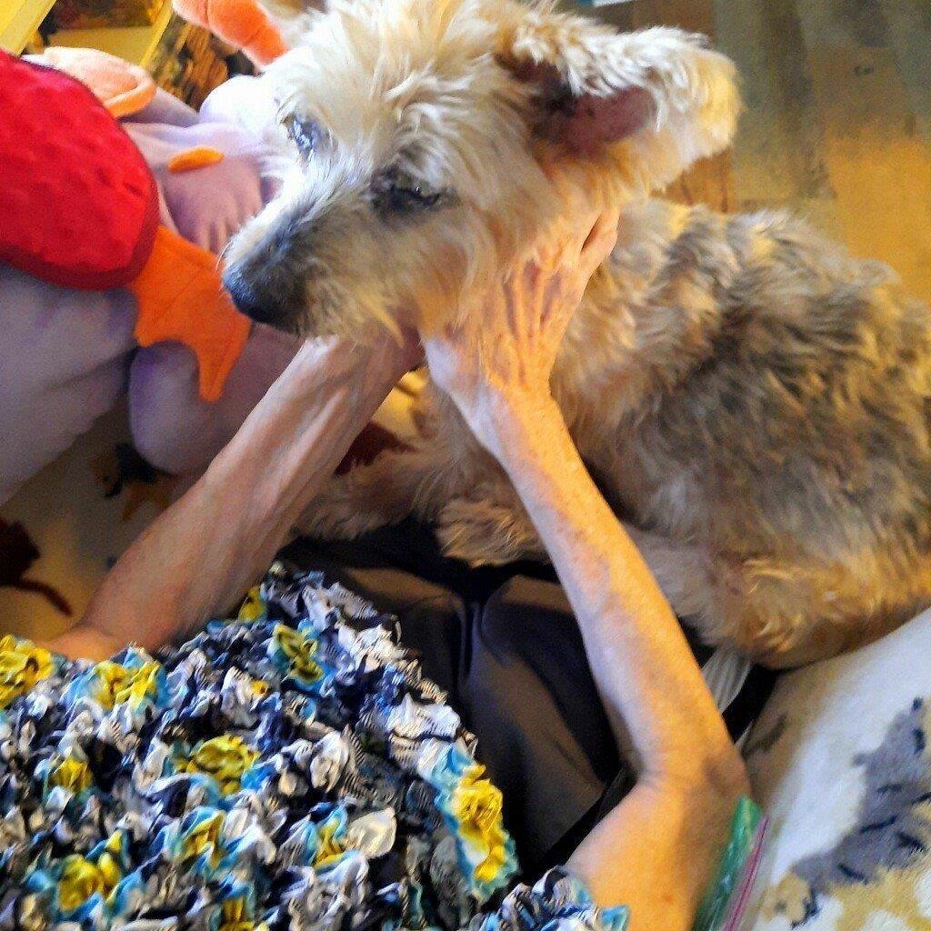 Sheffield, a veteran dog rescuer who takes in senior pets, offered Timmy one last car ride. She drove him to her vet, who met them outside and administered the euthanasia drugs in the car as she held him on her lap. She then placed him in his bed on the seat beside her and drove him to the crematorium herself.