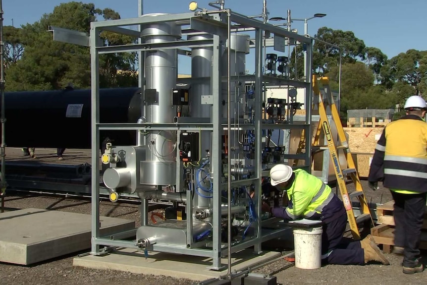 Electrolysers split hydrogen from water, producing emission-free energy.(ABC News)