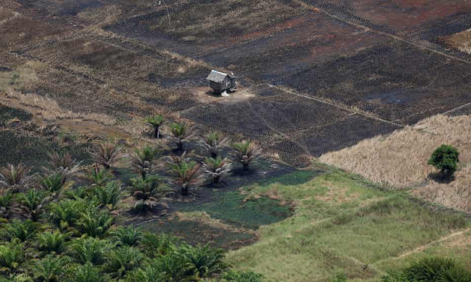 Burnt land next to a palm oil plantation in Central Kalimantan. Indonesia is the biggest producer of the crop, which is ranked at highest risk for land grabs.