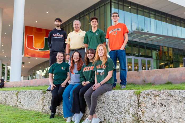 Grant and Award AnnouncementIMAGE: FROM TOP LEFT ARE DREW RICH, CHRIS LANGDON, ANWAR KHAN, ZACH BERKOWITZ, NANCY LEWIS, LAURA STIEGHORST, ISABELLE FITZPATRICK, AND EDEN LEDER. PHOTO: JENNY HUDAK/UNIVERSITY OF MIAMI view more