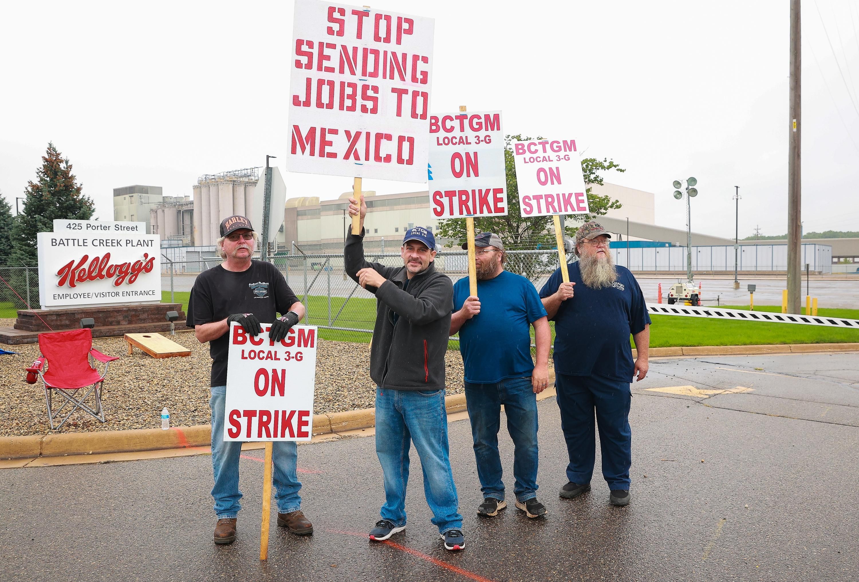 The workers have been on strike since Oct. 5 at plants in Battle Creek, Michigan; Omaha, Nebraska; Lancaster, Pennsylvania; and Memphis, Tennessee. They make all of the company's well-known brands of cereal, including Apple Jacks and Frosted Flakes.