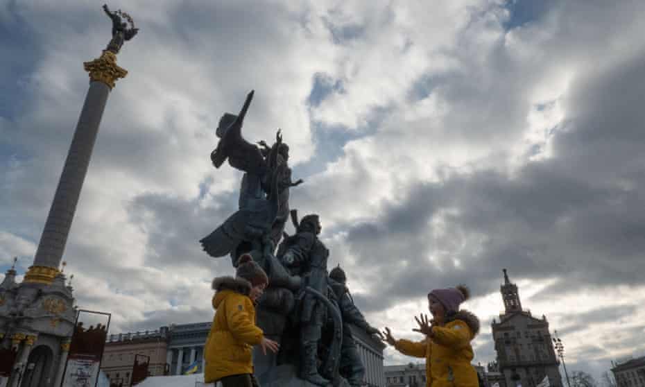 Children play in Independence Square as Kyiv remains calm despite the Russian military presence at its borders. Photograph: Bryan Smith/ZUMA Press Wire/REX/Shutterstock