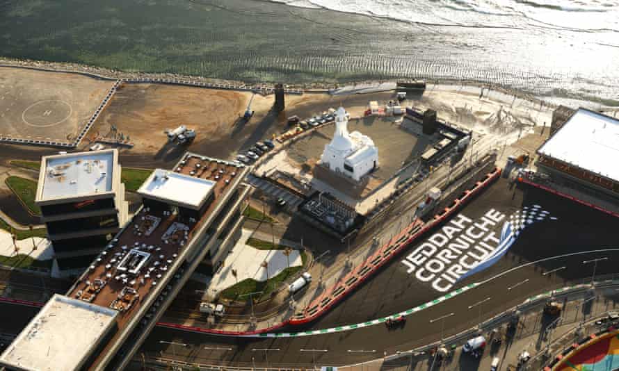 The Jeddah circuit is located approximately 10 miles from the site of the oil depot fire caused by a Houthi missile strike. Photograph: Clive Rose/Formula 1/Getty Images