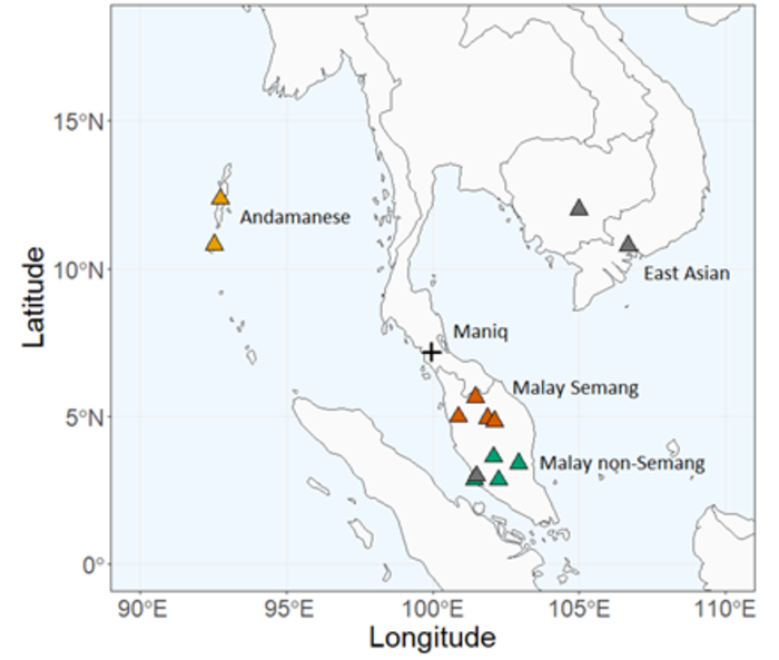 Residing in the hills of southern Thailand, the Maniq comprise one of the last hunter-gatherer communities in the world. Although the Maniq are geographically isolated, they share many cultural features with the Semang peoples, most of whom live over the border in Malaysia. Due to the complex relationships among the various communities in mainland Southeast Asia, anthropologists have long debated the demographic history of the area, with one, two, three, or four waves of human migration having been proposed for the region. A recent study in Genome Biology and Evolution by Tobias Göllner, Maximilian Larena, and colleagues titled “Unveiling the genetic history of the Maniq, a primary hunter-gatherer society” provides new insight into the Maniq and their relationships with other indigenous groups in mainland Southeast Asia.