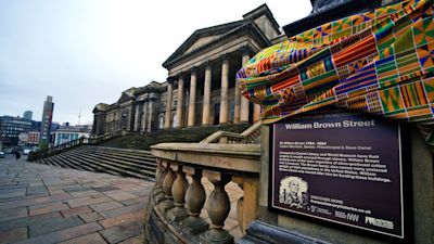 It reads: “Liverpool’s Central Library and World Museum have their origins in wealth accrued through slavery.