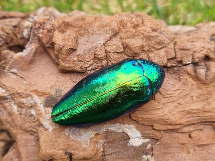 IMAGE: JEWEL BEETLE (STERNOCERA SP.) IRIDESCENCE CAN PROTECT PREY VIA CAMOUFLAGE AND BY ACTING AS A FORM OF DECEPTIVE WARNING COLORATION view more