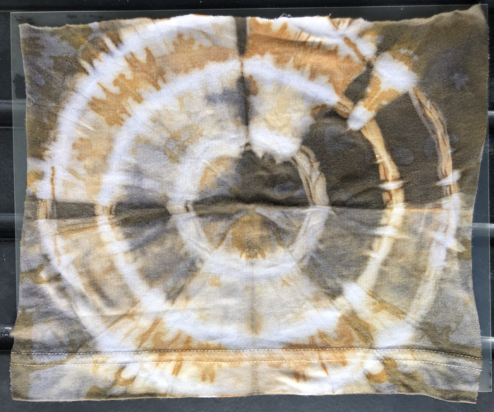 IMAGE: TIE-DYEING COTTON FABRIC WITH ACORN AND RUST SOLUTIONS TURNS IT BROWN, ORANGE, BLUE AND BLACK. view more