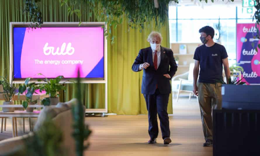 Boris Johnson with Wood during a visit to Bulb’s HQ, four months before the firm failed. Photograph: Andrew Parsons/No 10 Downing Street