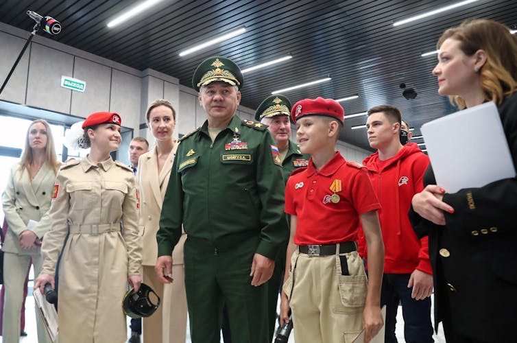 Every army needs new recruits: young members of the All-Russian Young Army Forum with defence minister, Sergei Shoigu, in 2021.