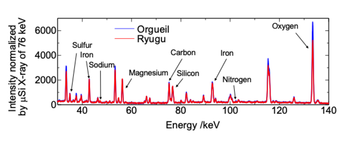 Figure 3: Muonic x-ray spectral comparison of asteroid Ryugu sample and CI chondrite Orgueil.