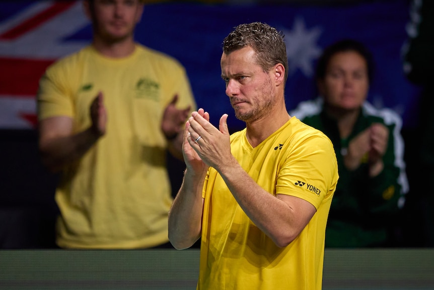 Australia captain Lleyton Hewitt encouraged Kokkinakis throughout. (Getty Images: Fran Santiago)