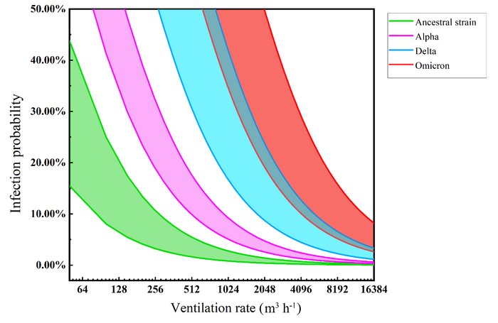 The researchers found that for all three variants of concern, ventilation rates had to increase substantially to ensure an infection probability of under one percent.