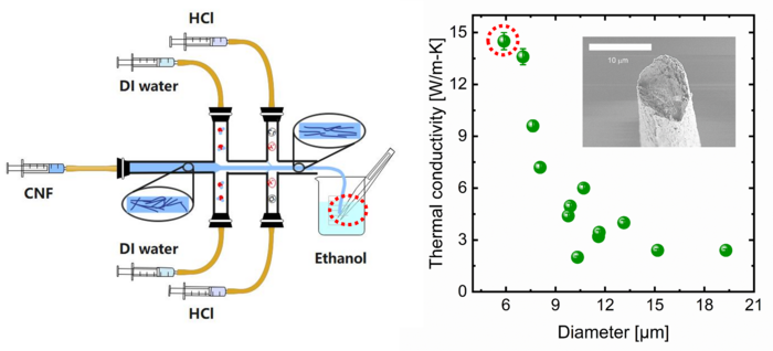 “Our main challenge was how to measure the thermal conductivity of such small physical samples and with great accuracy,” said Shiomi. “For this, we turned to a technique called T-type thermal conductivity measurement. It allowed us to measure the thermal conductivity of the rod-shaped CNF yarn samples which are only micrometers (a micrometer equaling one-thousandth of a millimeter) in diameter. But the next step for us is to perform accurate thermal tests on two-dimensional textilelike samples.”