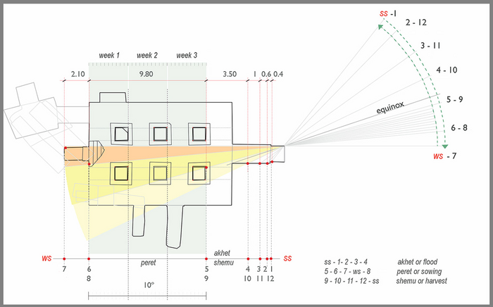 This way, the tomb perfectly registered the whole solar cycle, related to the idea of rebirth. While the winter solstice meant the beginning of the sunlight victory over darkness, the summer solstice generally coincided with the beginning of the annual flooding of the Nile, hence both events had an important symbolism linked to the resurrection of the deceased governor.