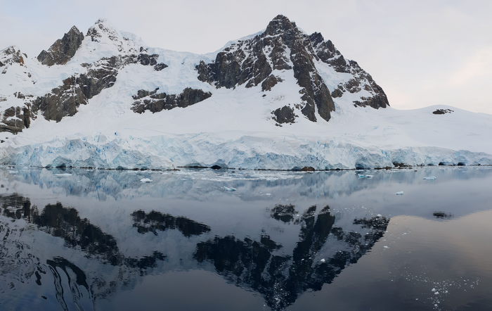 Reflections in the picturesque Lemaire Channel in the Antarctic Peninsula