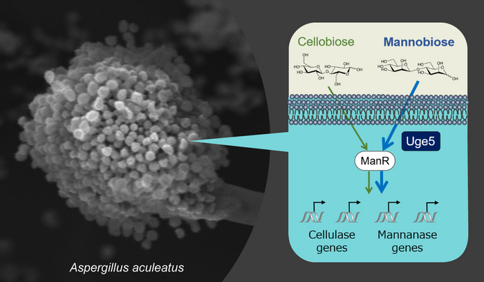 Uridine diphosphate (UDP)-glucose 4-epimerase (Uge5) is well known as an enzyme involved in galactose metabolism. However, the team discovered that Uge5 also regulates the expression of degrading enzyme genes in A. aculeatus. This is the very first report of Uge5’s roles in selective gene expression in response to different types of inducing sugars in filamentous fungi.