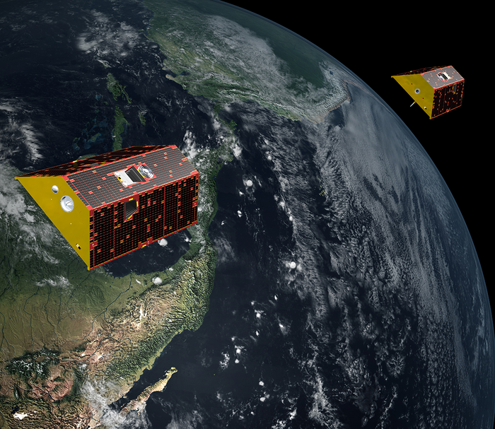 How can the geodesists at TU Graz use data from space to make accurate statements about groundwater reservoirs? At the heart of the G3P project are twin satellites named Tom and Jerry, which orbit the Earth in a polar orbit at an altitude of just under 490 kilometres. The distance between the satellites of around 200 kilometres is important. The one behind must not catch up with the one in front, which is why they have been given the name Tom and Jerry in reference to the cartoon characters.