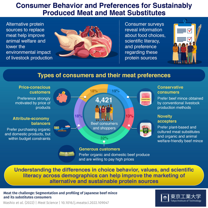 To understand consumer preferences and attitudes towards these alternative protein sources, researchers from Tokyo Institute of Technology (Tokyo Tech) and Shinshu University in Japan conducted a survey involving 4,421 beef consumers and shoppers in Japan.