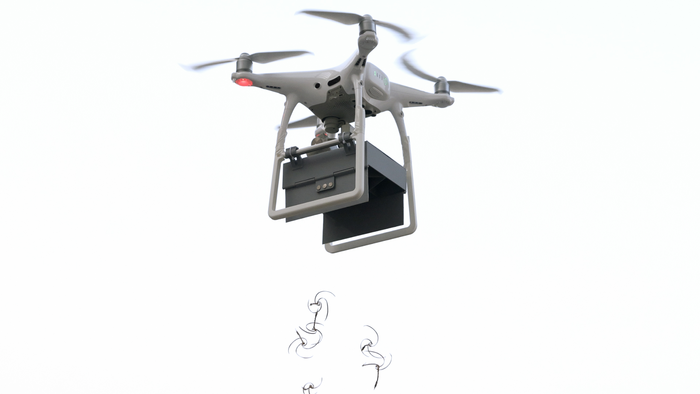 E-seeds are dropped from a drone during a field test of the engineered seed carriers.
