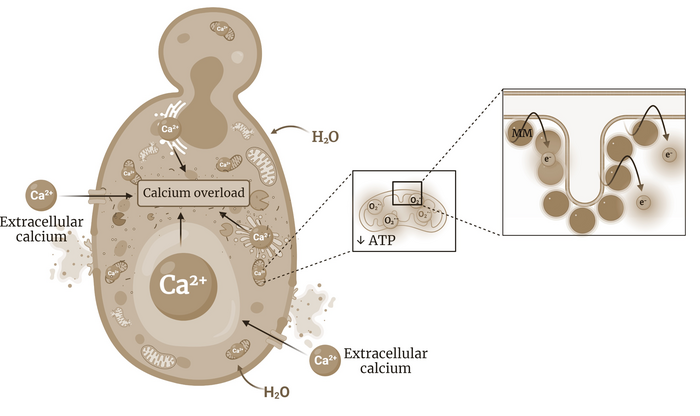 "By targeting the mitochondria, our molecules disrupt the cell's metabolism, resulting in an overall energy imbalance that leads to an uncontrolled flow of water and ions such as calcium into the cell, eventually causing the cell to explode," Santos explained.