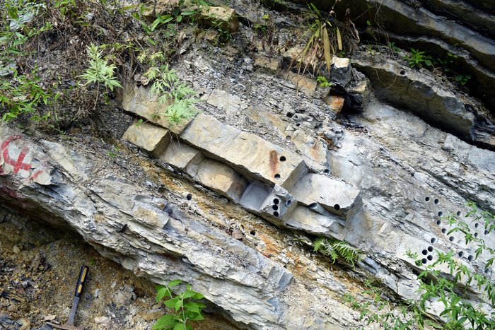 A section of rock from the Permian-Triassic boundary taken in Hubei Province in southern China.