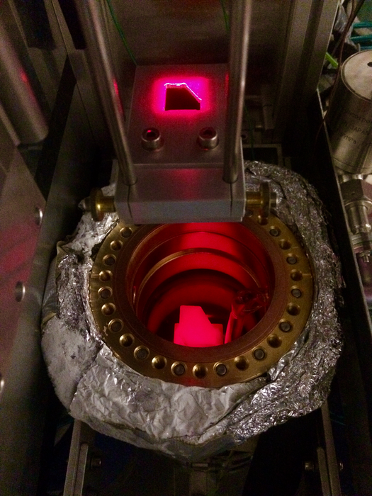 Sublimation extraction of ice samples, here with the vacuum vessel open. The technique developed at the University of Bern makes it possible to obtain the tiniest air samples continuously and without contamination from an ice core. This will make it possible to take greenhouse gas measurements with the necessary precision and temporal resolution in 1.5 million year old ice.