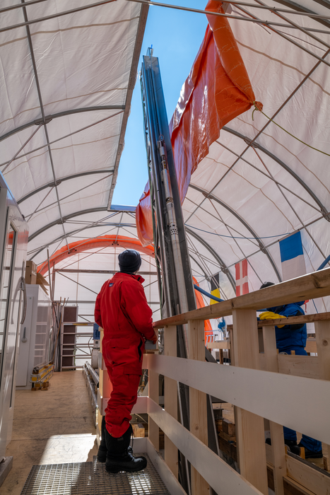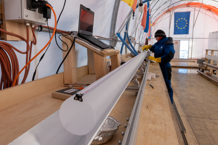 In the project’s second drilling season, which has just ended, the international team worked for two months under extreme conditions. There were unforeseen setbacks such as repairs to the drilling system and delays due to poor weather conditions. Drilling was carried out in two shifts in 16-hour operation. The Little Dome C drilling site is located 34 kilometers from the French-Italian Concordia research station. At this expedition base station, the two Bernese researchers Markus Grimmer and Florian Krauss were tasked with cutting the ice cores into transportable pieces using a special saw developed by the University of Bern.