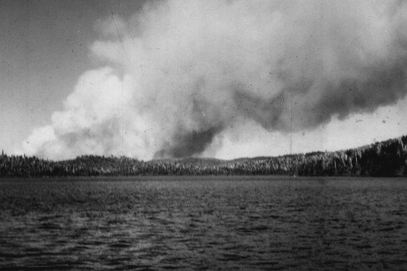 One of Japan’s “paper ICBMs” landing near the United States-Canada border in March 1945.