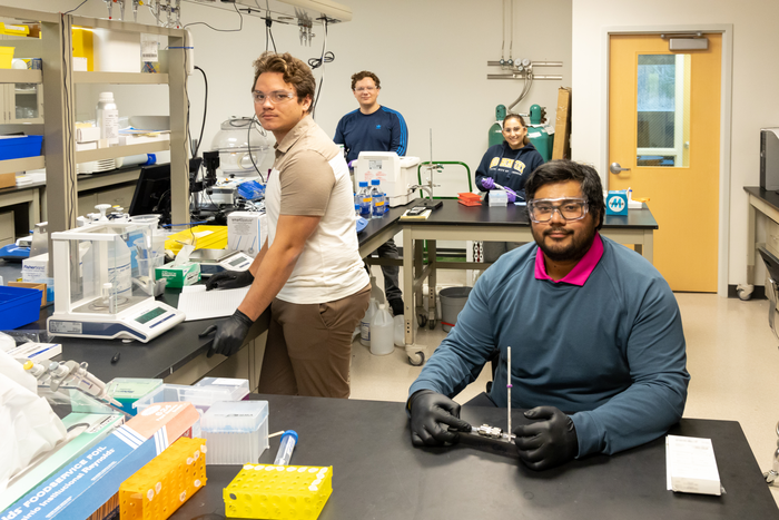 University of Windsor students prepare samples at the University of Tennessee Shull Wollan Center.