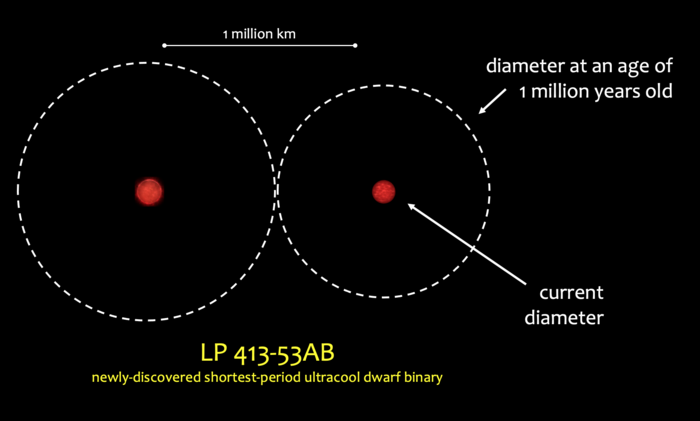 Previously, astronomers had only detected three short-period ultracool dwarf binary systems, all of which are relatively young — up to 40 million years old. LP 413-53AB is estimated to be billions of years old — similar age to our sun — but has an orbital period that is at least three times shorter than the all ultracool dwarf binaries discovered so far.