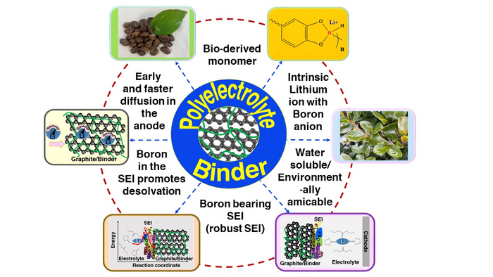Researchers show that inherent lithium ions in bioderived borate polymer enhance 'extreme fast charging' capability in graphite anodes