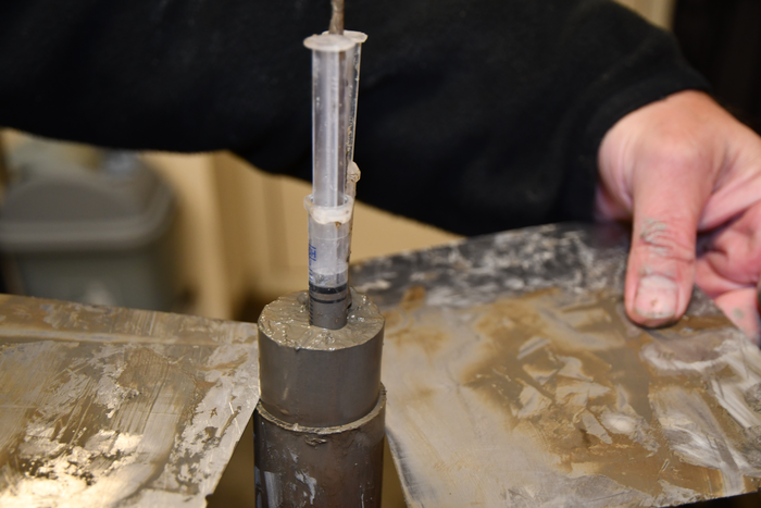A sediment core from the Atacama trench is being cut open for further analysis