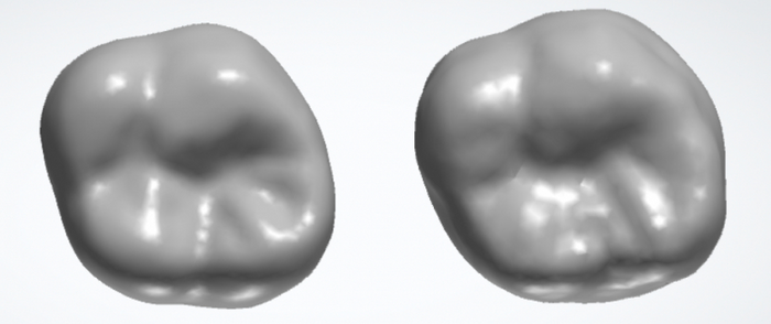 Natural tooth (left) compared with tooth tailored by generative AI (right).