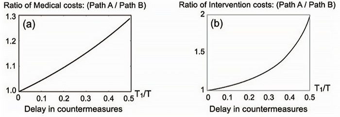 "Our general but robust findings indicate that delaying countermeasures leads to cost increases, and once the infected population climbs more than the population under timely and moderate measurers, the system becomes economically irreversible as additional expenditures begin to snowball," adds Hondou.